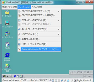 ファイルメニューの「デバイス」-「Guest Additions」を選択実行